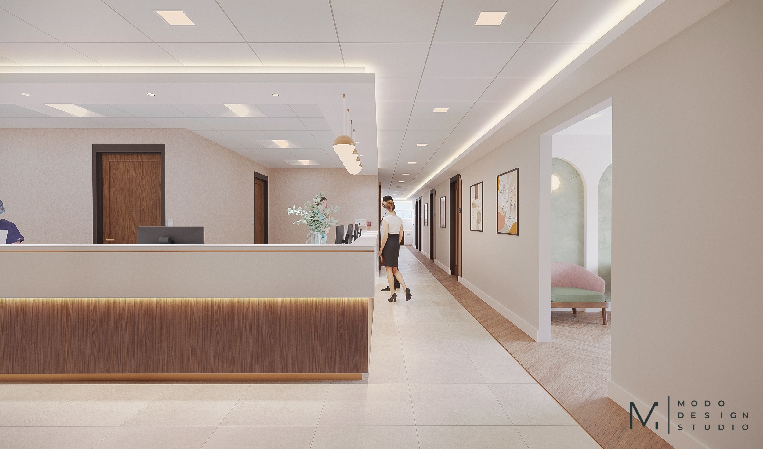 The project began with a deep understanding of the client’s needs, including functionality, branding, and patient comfort. A cohesive design concept was developed, featuring clean lines, natural tones, and high-quality materials to evoke a sense of trust and tranquility. Collaborative iterations ensured attention to detail, from efficient spatial layouts to lighting and furnishings.